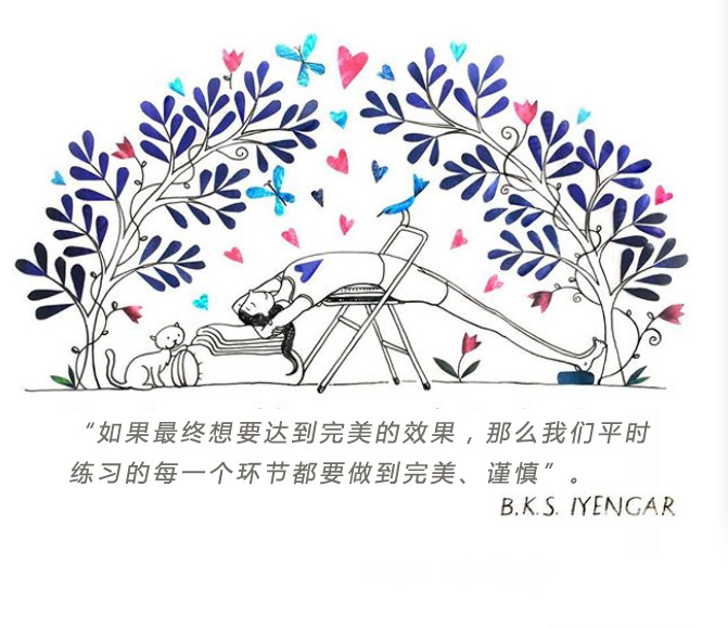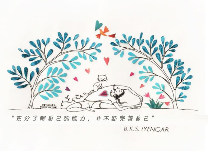“瑜伽的挑战在于超越我们的极限,但要在理性的限度之内。我们用身体的画布不断扩展我们心灵的框架,就像把一张画布不断的拉伸,以获得更大的绘画空间”。-艾扬格